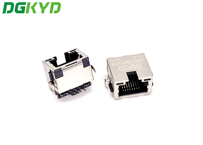 Jack RJ45 SMT de baixo perfil com blindagem metálica Conector RJ45 SMT de placa de dissipação 4.2 DIP com blindagem e luz DGKYDCB421188AB1W6DB1075
