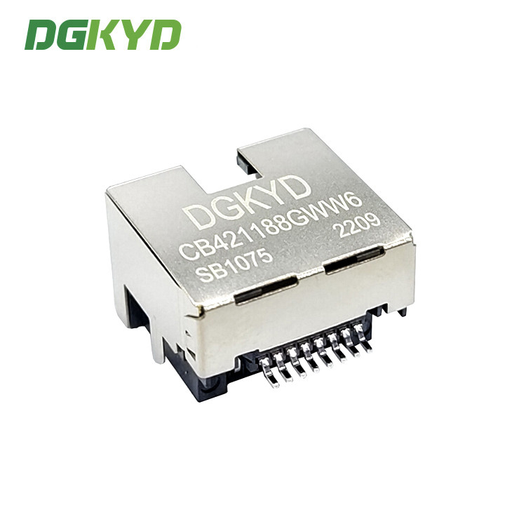 Jack RJ45 SMT de baixo perfil com blindagem metálica Conector RJ45 SMT de placa de dissipação 4.2 DIP com blindagem e luz DGKYDCB421188AB1W6DB1075
