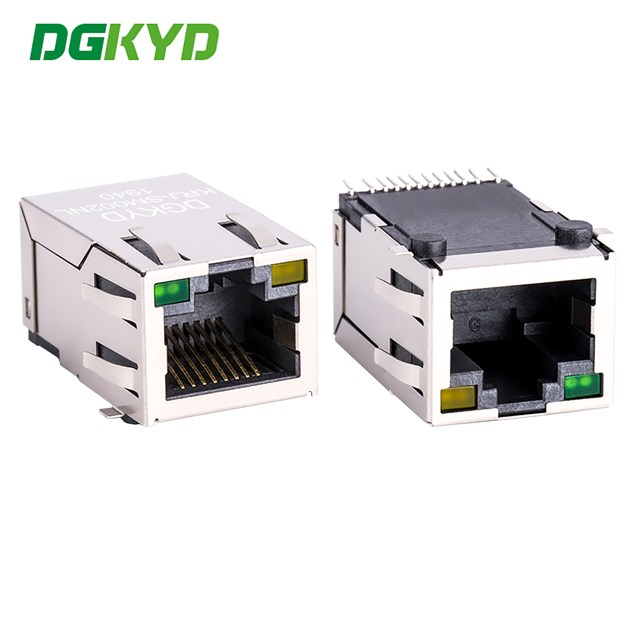 Conector PCB RJ45 blindado de metal SMD CAT5 Rj45 Magnetic Jack, porta Ethernet G/Y LED RJ45 transformador de rede 100Mbps KRJ-SM002NL