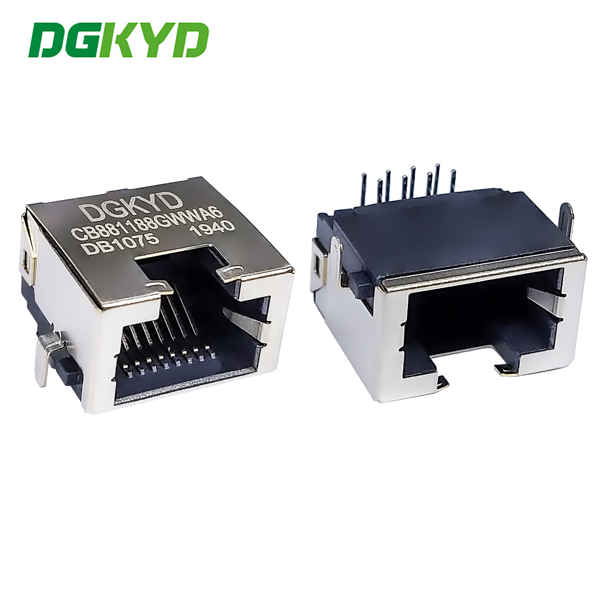 Jack RJ45 SMT de baixo perfil com blindagem metálica Conector RJ45 SMT de placa de dissipação 4.2 DIP com blindagem e luz DGKYDCB421188AB1W6DB1075