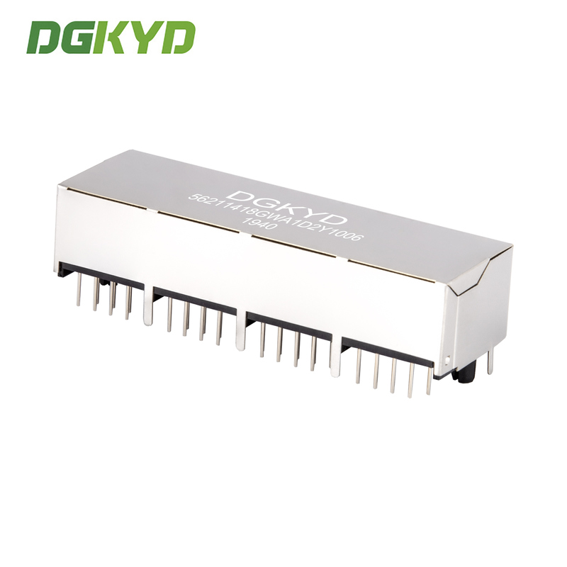 Drawing: 1X4 Ethernet shielded connector RJ45 female socket horizontal interface DGKYD56211418GWA1D2Y1006